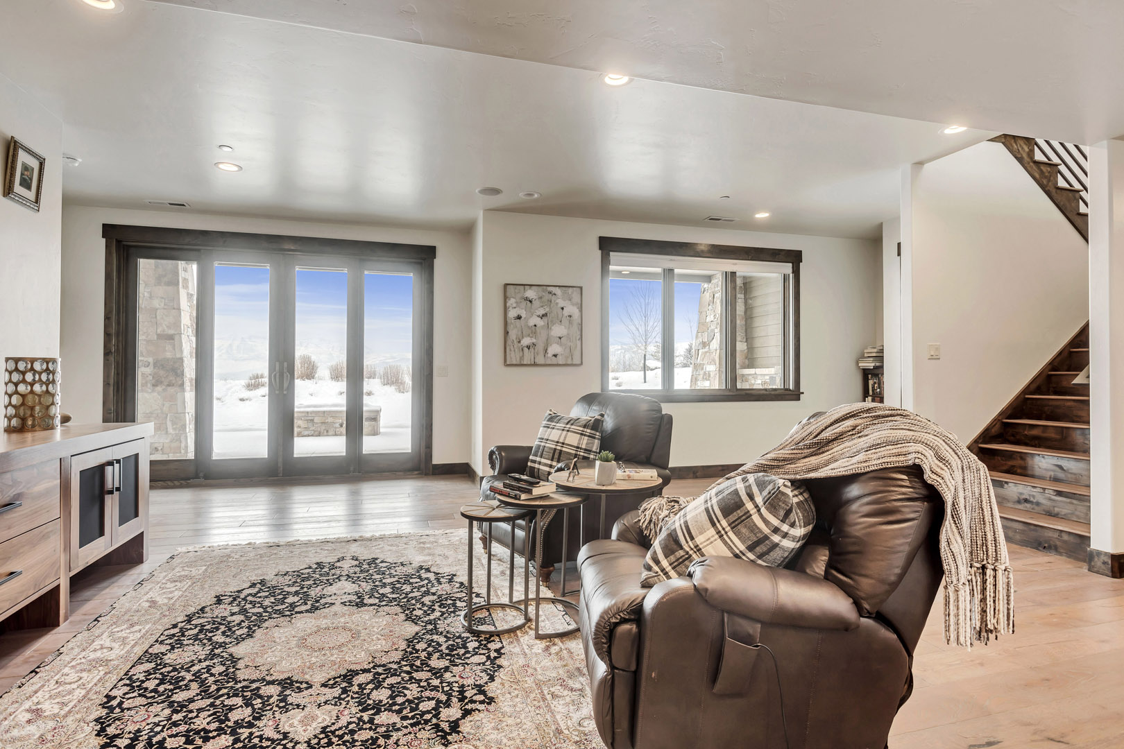 Right to purchase golf course membership comes with purchase of home. Entertain from the large deck, patio or lawn. Includes 5400 sq ft of living space with an additional 1000 sq ft multi purpose room. Four suites with large welcoming bathrooms. Whole house sound, large steam shower, bathroom radiant heat, sub zero / wolf appliances and much more.